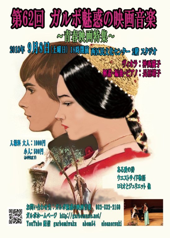 次回の魅惑の映画音楽は、2018年9月8日(土)18時開演 「青春映画特集」