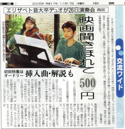 2005年11月17日 中国新聞 文と写真:梨本嘉也記者
